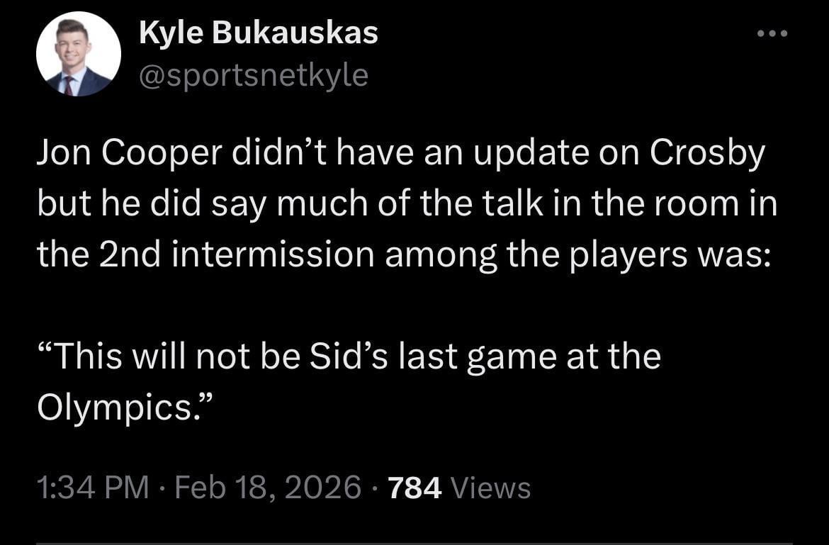 Look, I’ll remain optimistic but this quote reads more as the guys in the room saying we’re going to win for Sid so this isn’t it for him at the Olympics more than he’s okay to play.