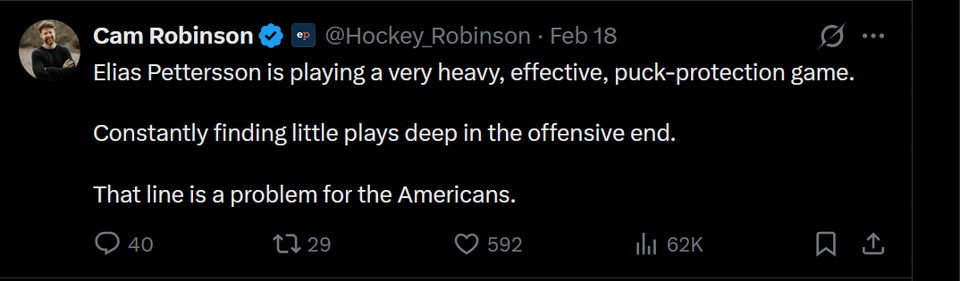 Le coaching de la Suède était tellement bizarre. Petey a été mis sur le banc en 3e contre les États-Unis malgré qu’il ait bien joué.