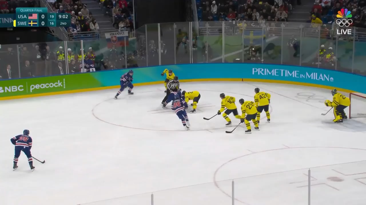 This is how the U.S needs to find success. They have an advantage in the faceoff dot and most of their offense has come from forechecking successfully. Give the Swedes a lot of credit though, they’re doing a great job of breaking out and it seems like most of this game has been played in the U.S zone especially before that goal. Gonna be an electric 3rd.