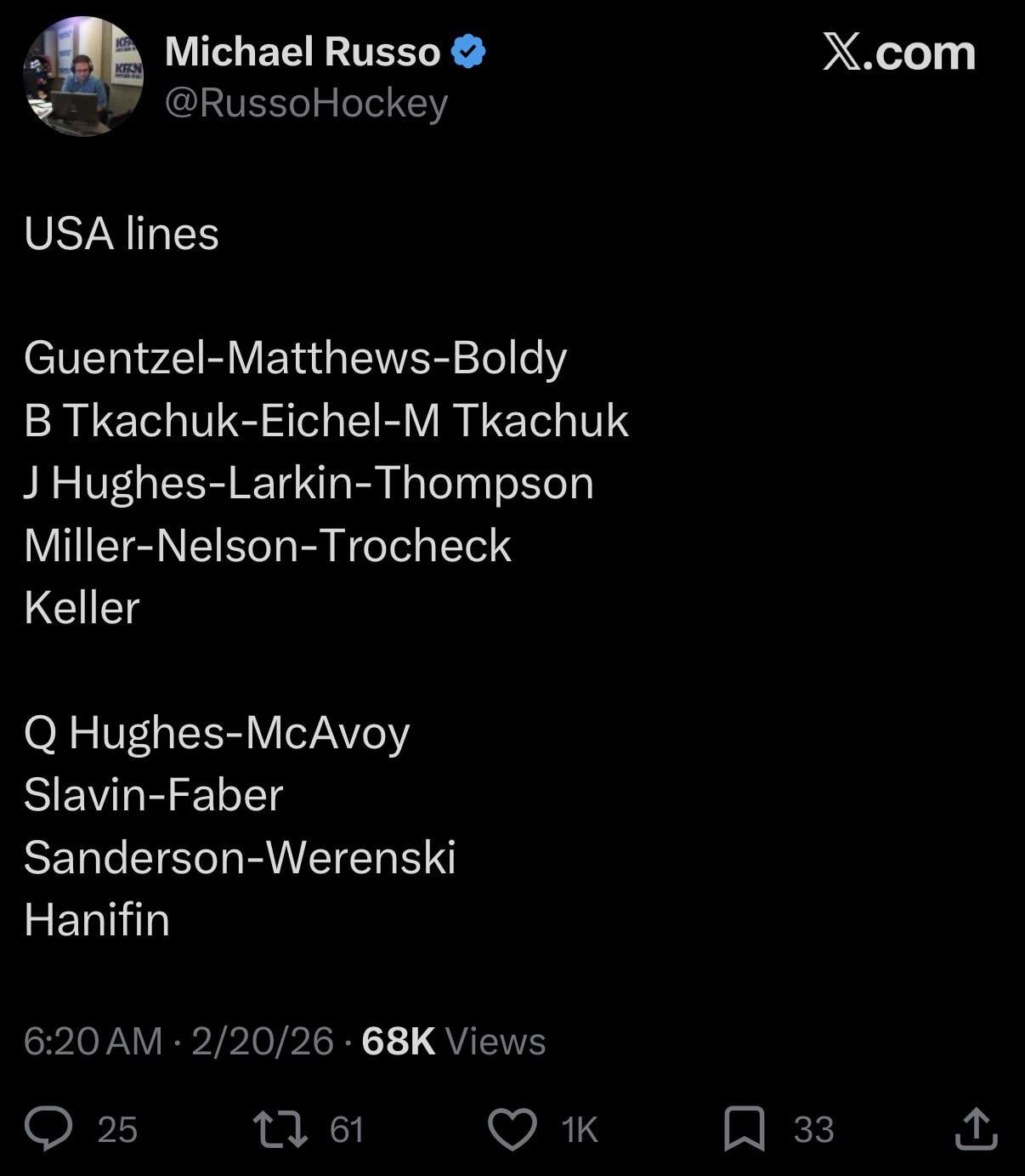 Besides looking fantastic this Olympics run, I’m surprised they didn’t keep Jack with Brock considering the chemistry but I love his linemates being Tage and Lark. And some powerplay time as well