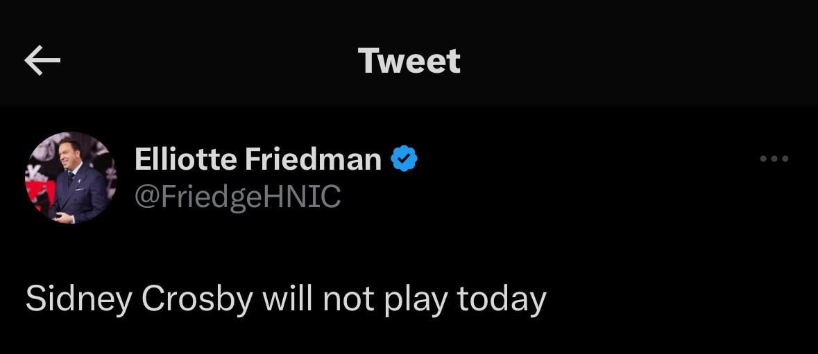 i feel sick. emily kaplan said he’s trying to play in the gold medal game if canada get there but? we still basically know nothing apart from he can skate. and i accept he can skate and will cope .