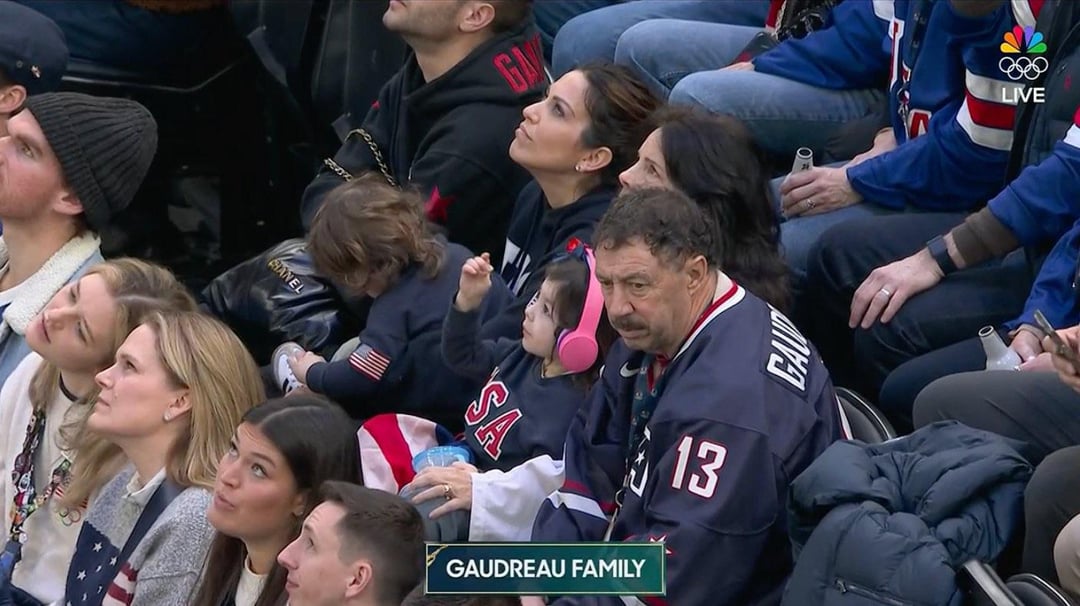 La famille de Johnny et Matthew Gaudreau est dans le bâtiment ce soir tandis que le maillot de Johnny est suspendu dans le vestiaire de l’équipe américaine.
