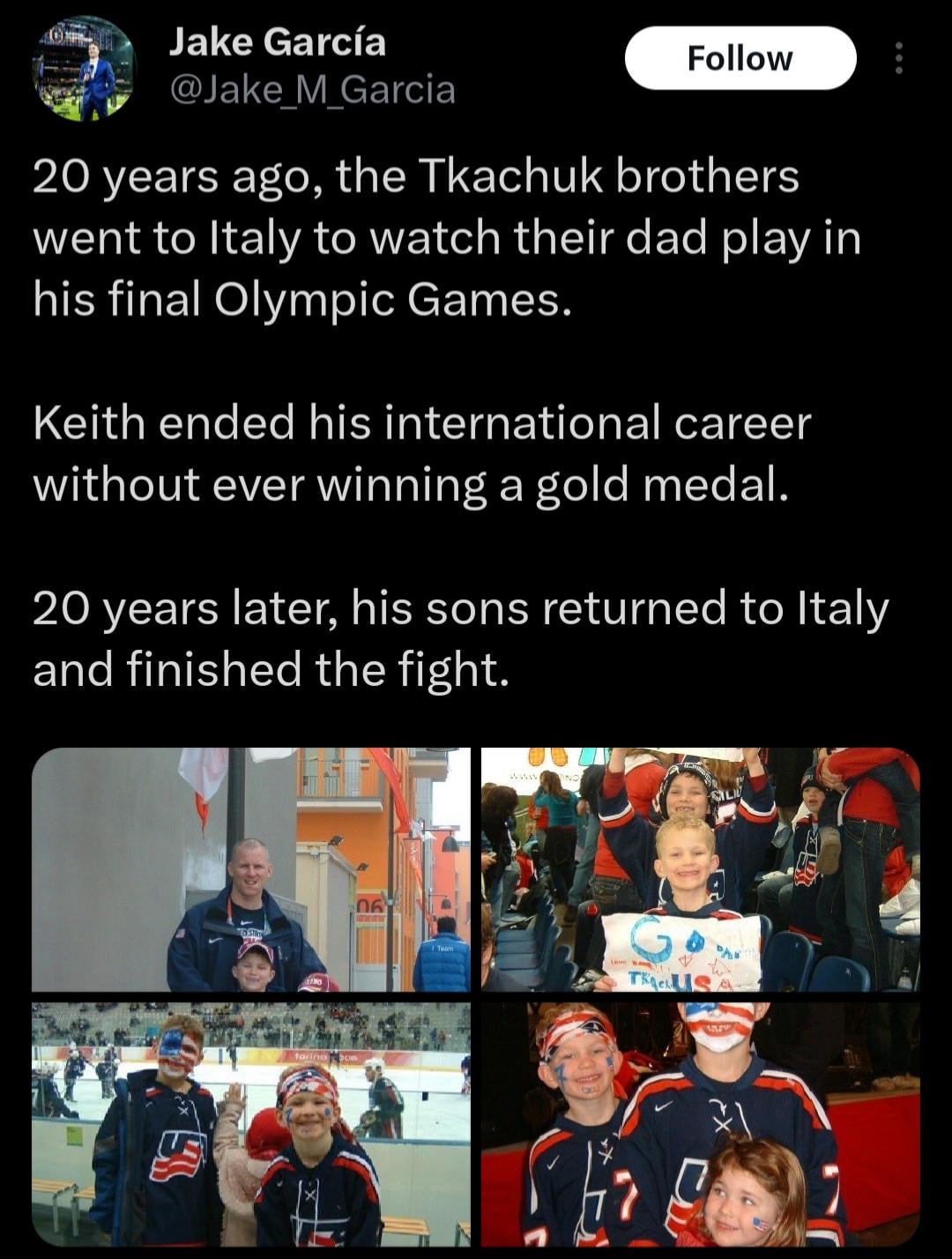 Never won a Cup and never won the Gold. Raised one son who won both in the matter of 2 years and another who won one of them. A great example of what many parents strive for in raising their kids.
