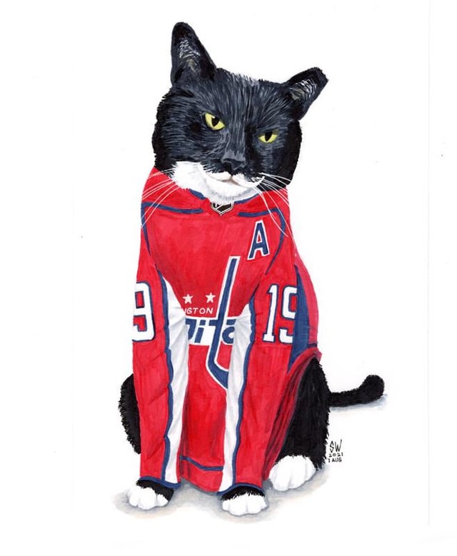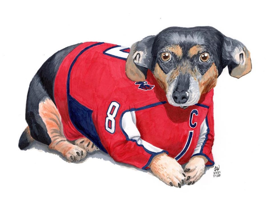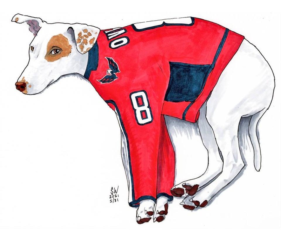Pendant un certain temps, pendant la pandémie, j’ai occupé mon temps libre à dessiner les animaux de compagnie des gens portant les maillots de leurs joueurs préférés. Voici quelques-uns de ces dessins.