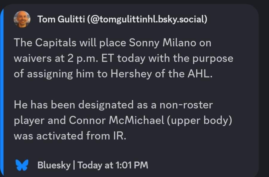 I just told girlfriend. She likes Milano. She is not happy, even if he does clear waivers.