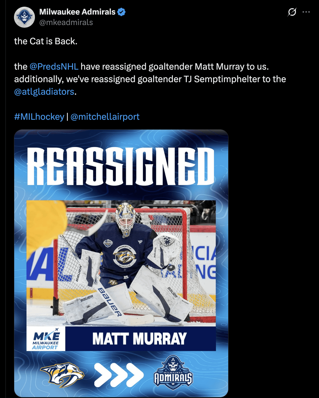 Murray réaffecté à Milwaukee — catsgr8rthanspoonies Association de l’OuestCentral DivisionCentrale DivisionNashville PredatorsPredators de NashvilleWestern Conference Write A CommentVous devez vous connecter pour publier un commentaire.