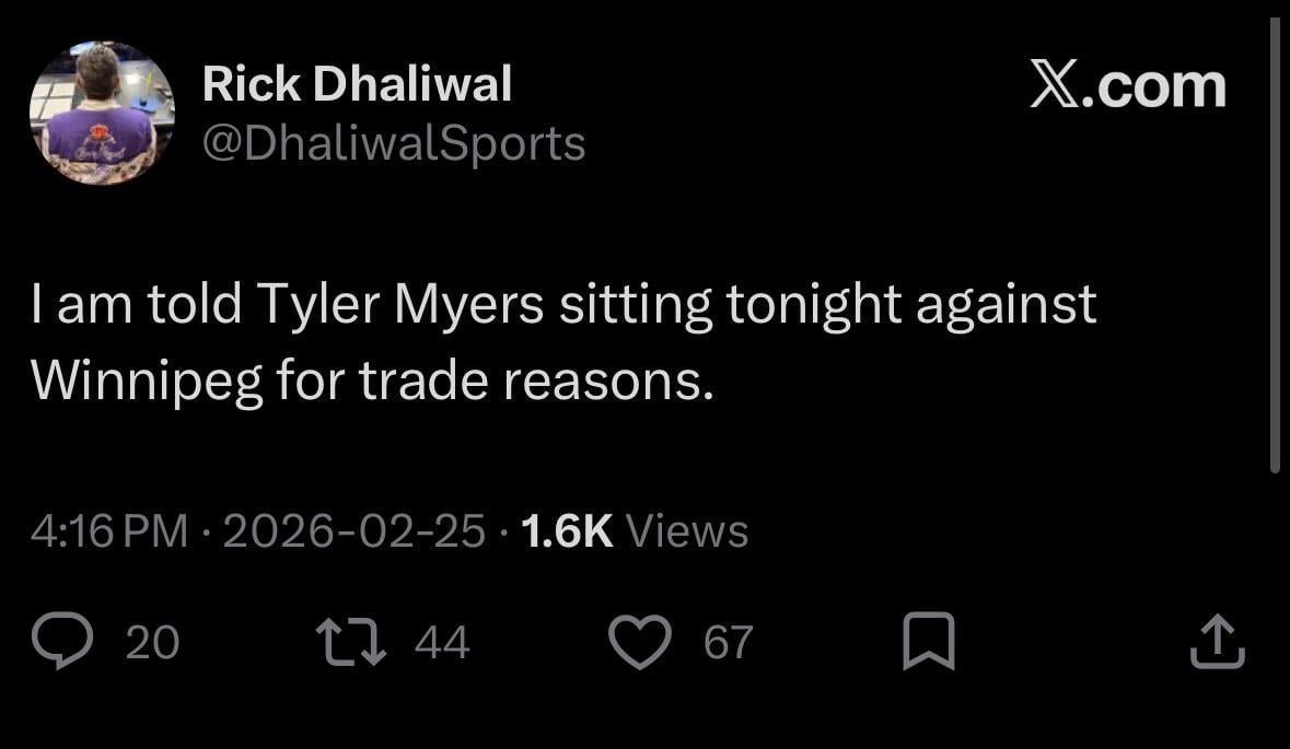 Been hearing about Tyler Myers at the trade deadline for probably 10+ years now lol