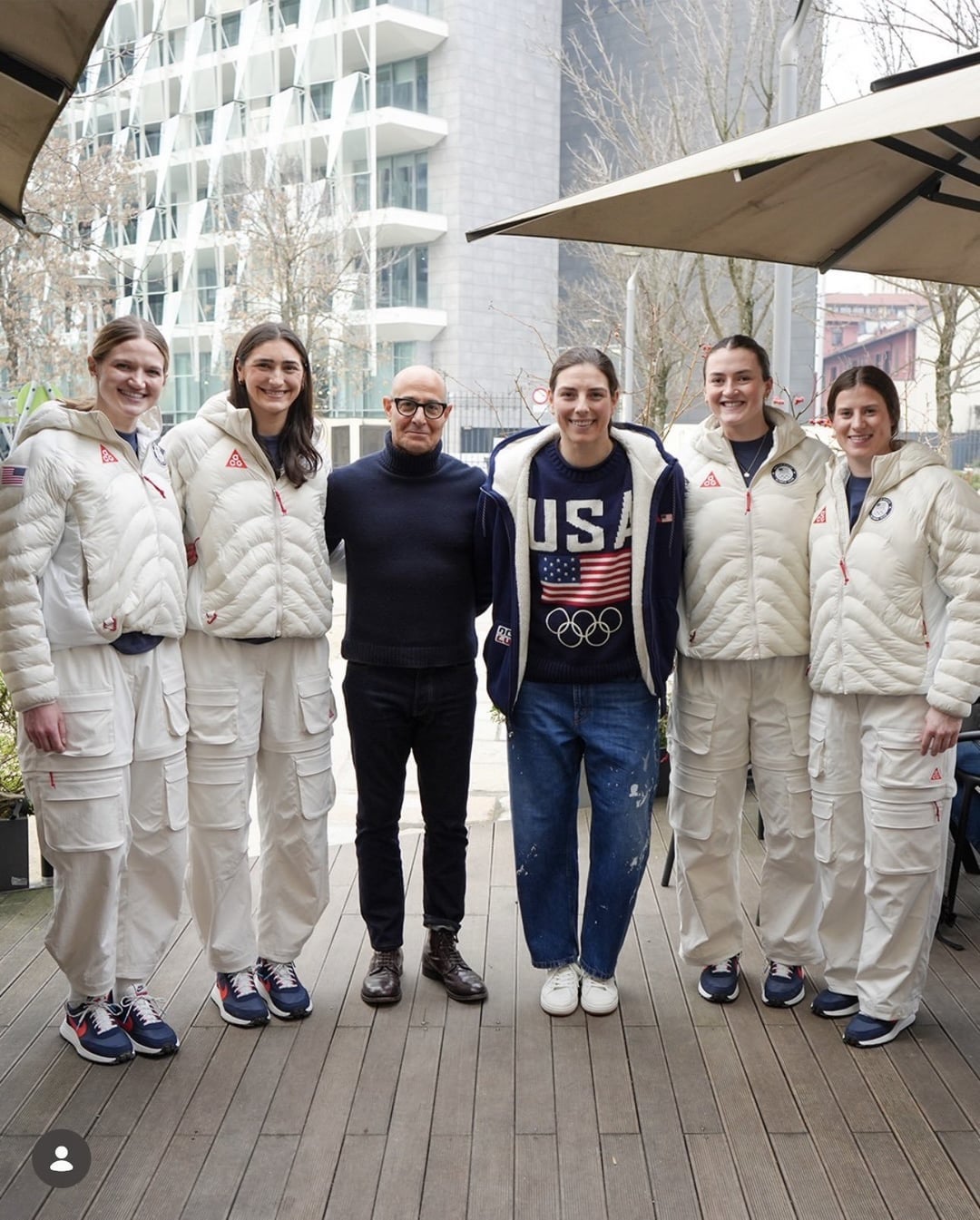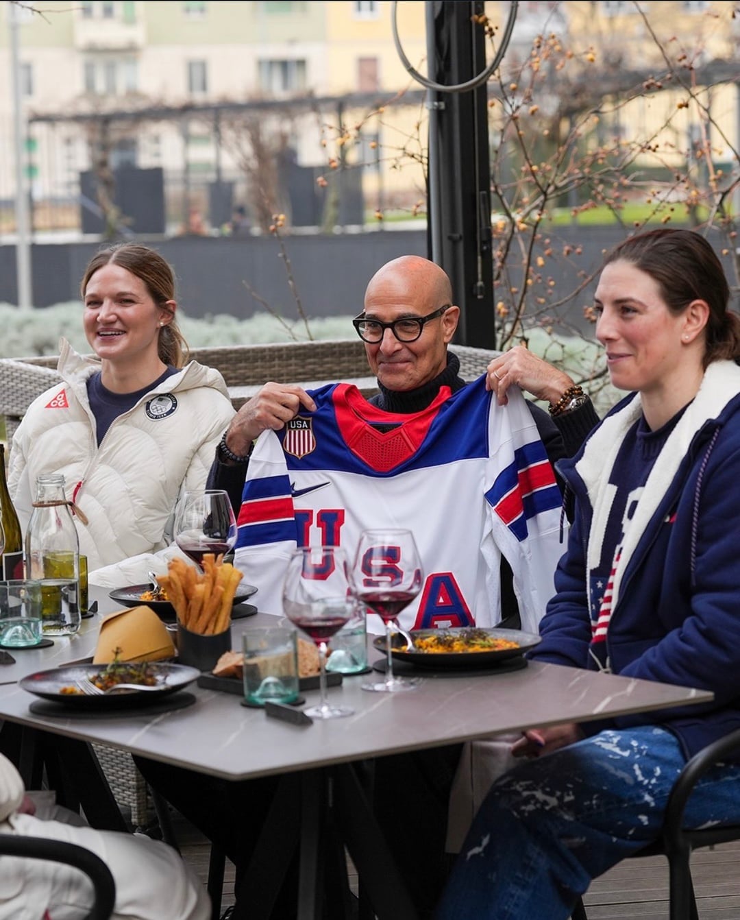 Stanley Tucci offre à l’équipe américaine de hockey féminin l’un de ses restaurants préférés à Milan : Nous vous avons apporté un maillot parce que vous voulez jouer vers l’avant