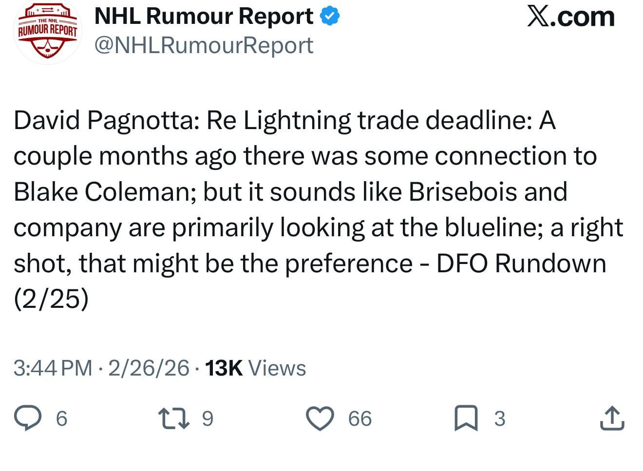 The real hole is RD. Beyond Raddysh and Cernak, there’s not much. A legit 2nd-pair RD to play with #77 would make a big difference. And I still think we re-sign Raddysh even if we bring in a new RD.