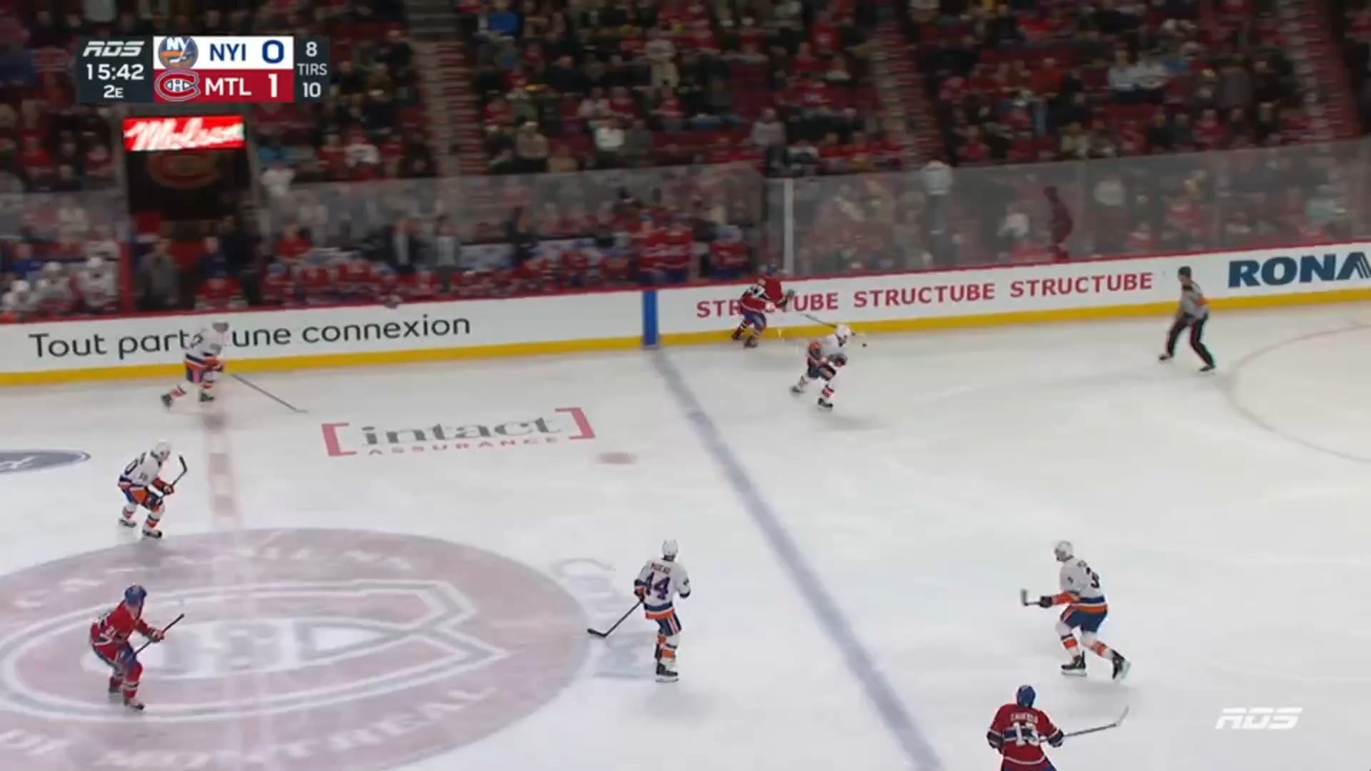 Cole Caufield crée de la confusion au centre de la cloche en redirigeant la rondelle avec son patin derrière la ligne de but, la décision sur la glace n’est pas un but