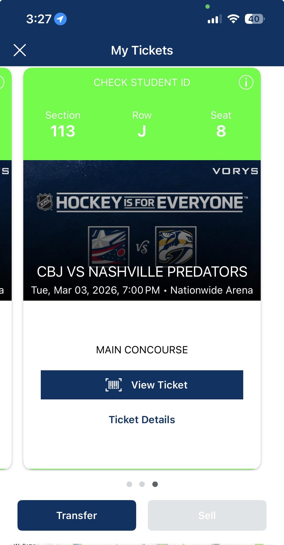 J’ai un billet étudiant à vendre pour le match de mardi contre Nashville. Je suis un idiot et j’ai oublié de le supprimer de mon panier lorsque j’ai vérifié avec des billets dans une autre section. J’ai payé 31 $ après taxes et c’est pour cela que j’aimerais le vendre.