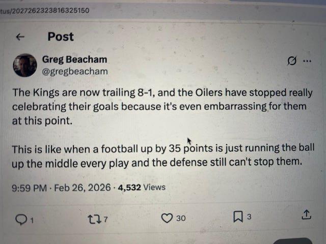 I’ve been predicting the wheels falling off for them since last season. Now with Fiala out they’re for sure stuck in the doldrums. Too good to win a draft pick but perpetual punching bags for real playoff teams.