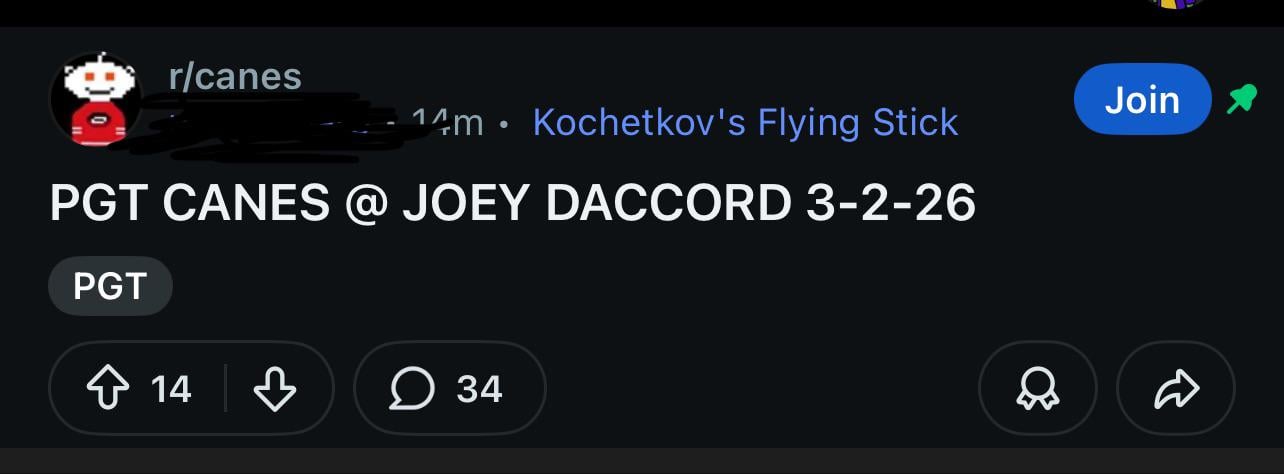 Edit: Doh! Stupid fat fingers… Thought I clicked on the Canes sub post…