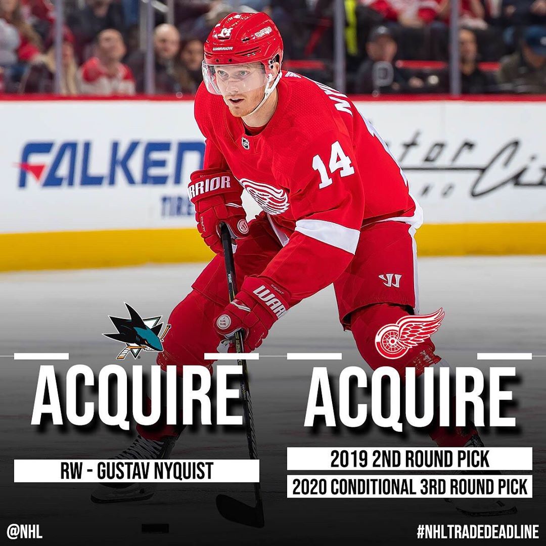 Les choses s'améliorent déjà lorsque les @sanjosesharks acquièrent Gustav Nyquist en échange de choix brouillons. #NHLTradeDeadline