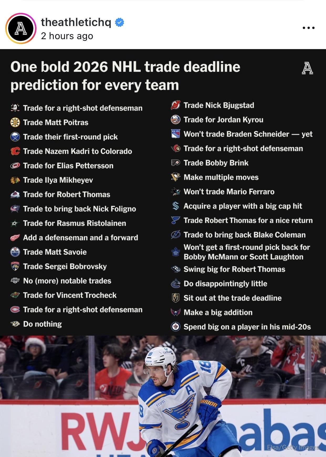 Some of these are really lazy « bold predictions. ». Nashville is expected to « do nothing, ». Buffalo will « trade their first round pick, Seattle will « acquire a player with a big cap hit. »