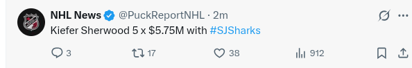 Seriously, good on Mike Grier….I really kinda worried he was just made GM to see the Sharks through the dismal years. Glad players are buying in there under his watch.