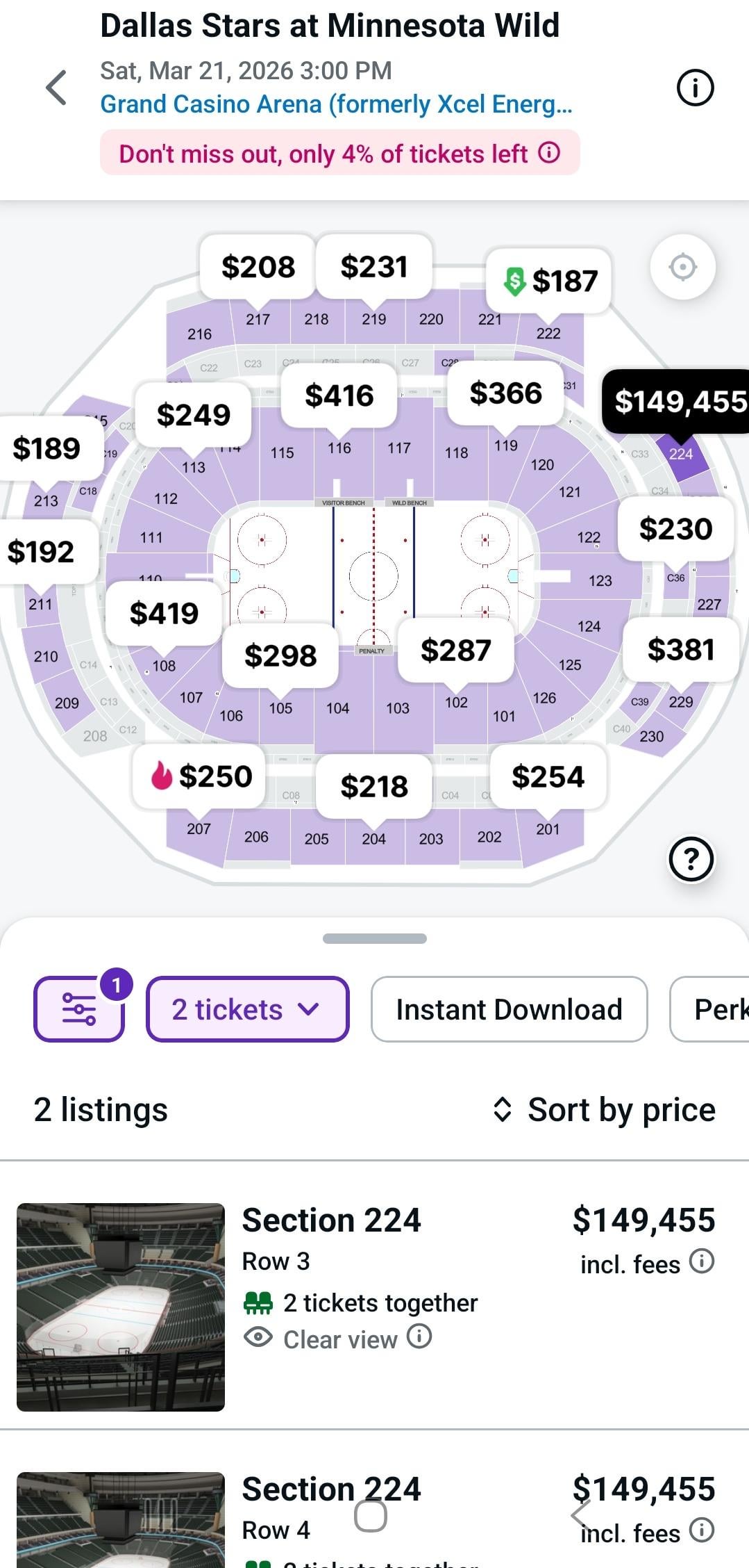 I get that it’s an afternoon Saturday game against the Stars but $187 for the cheapest seat before fees is insane.