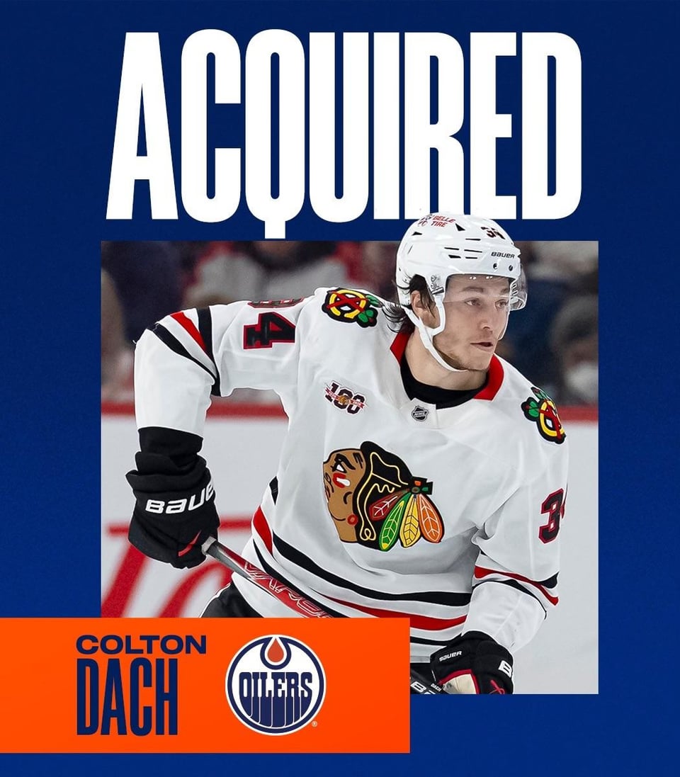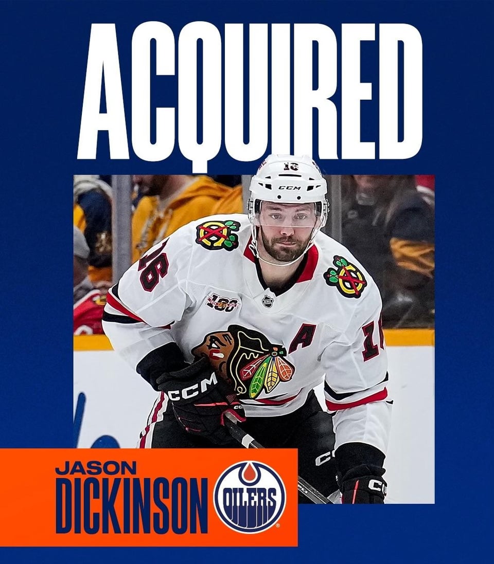 COMMERCE 🔄 Les #Oilers ont acquis les attaquants Jason Dickinson et Colton Dach des Blackhawks en échange de l’attaquant Andrew Mangiapane et d’un choix conditionnel de première ronde en 2027. Chicago conservera 50 % du salaire de 4,25 millions de dollars de Dickinson.