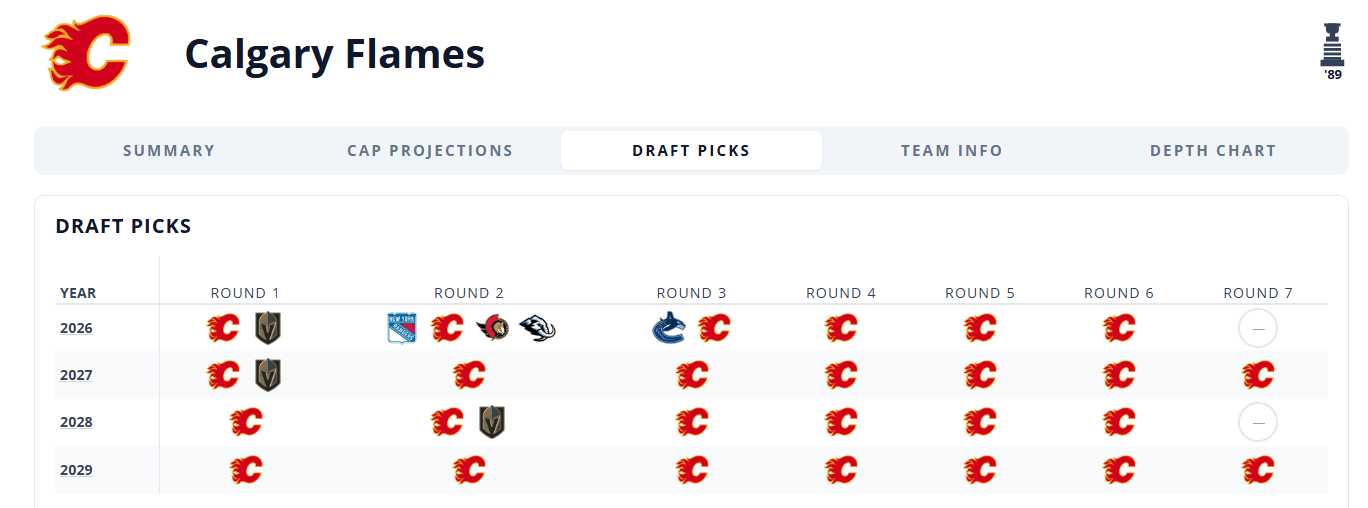 It should be interesting to see what the Flames do with all those second round picks. They could bundle them together to move up higher in the draft, or really clean up by picking up the players who unexpectedly fell in the draft.