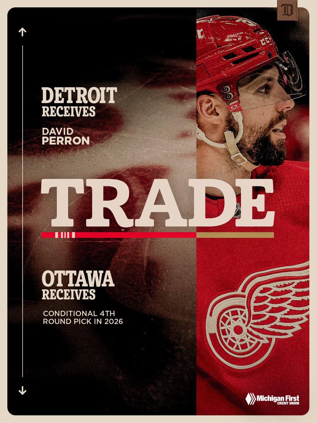 MISE À JOUR : Les #RedWings ont acquis David Perron des Sénateurs d’Ottawa en échange d’un choix conditionnel de quatrième ronde au repêchage 2026 de la LNH.