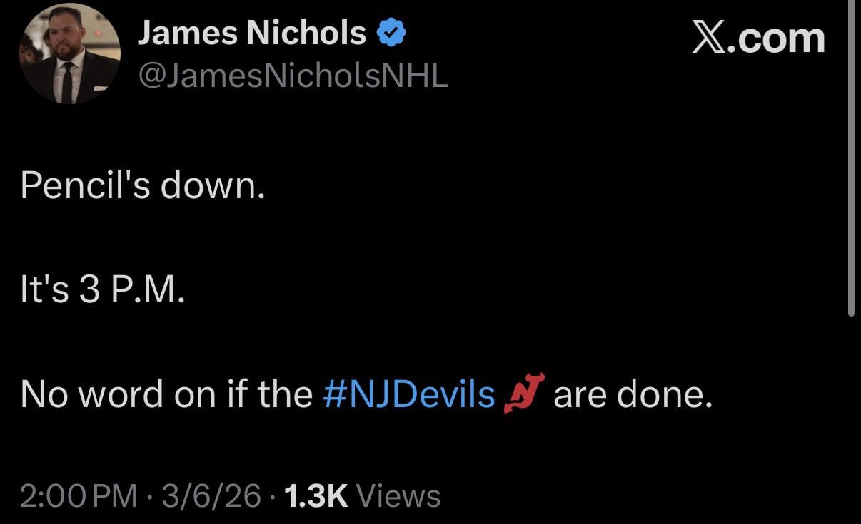 « No word on if the Devils are done. » – The fuck you mean lol the time has passed