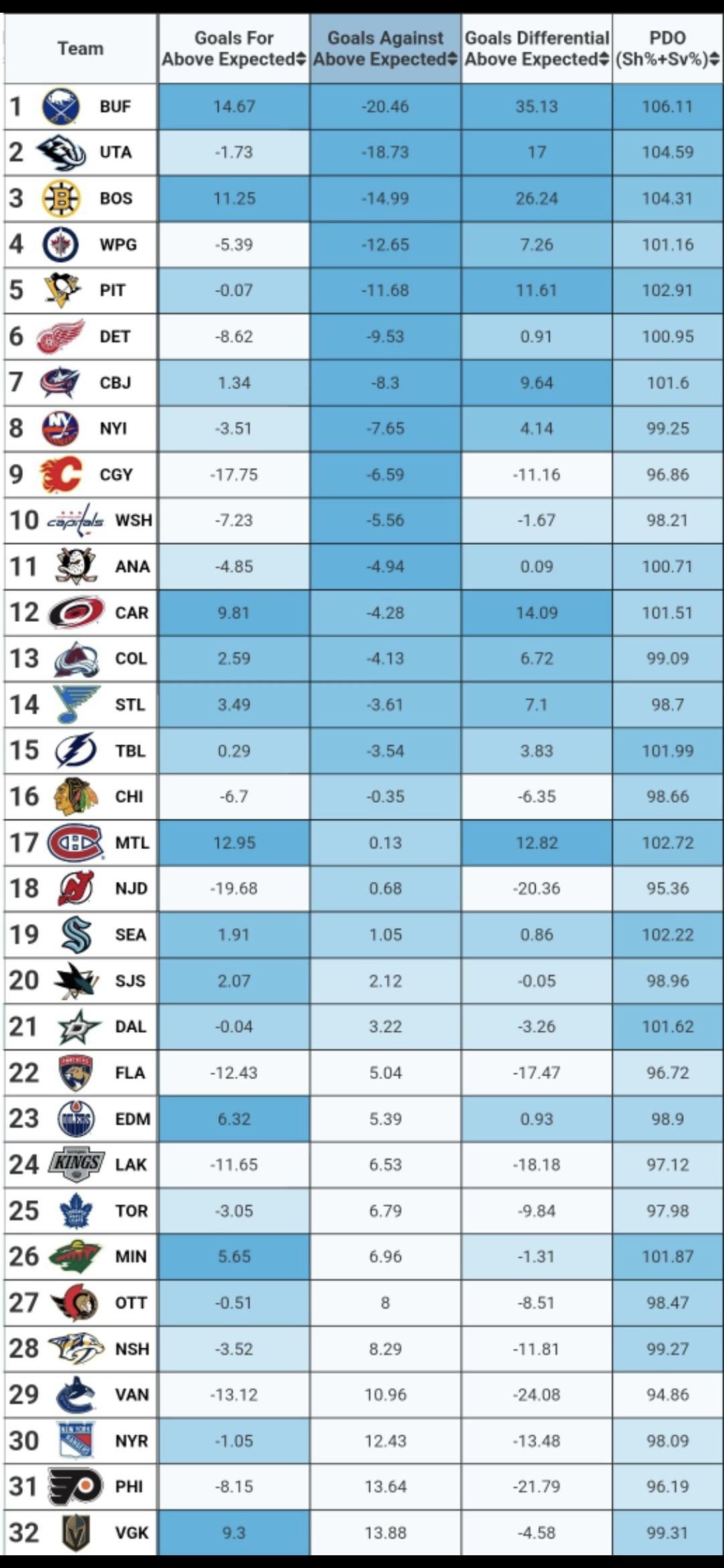 I actually ran all of the numbers at a game by game level. The TL;DR is Vegas would be doing a lot better with not atrocious goaltending – league rank in parentheses: