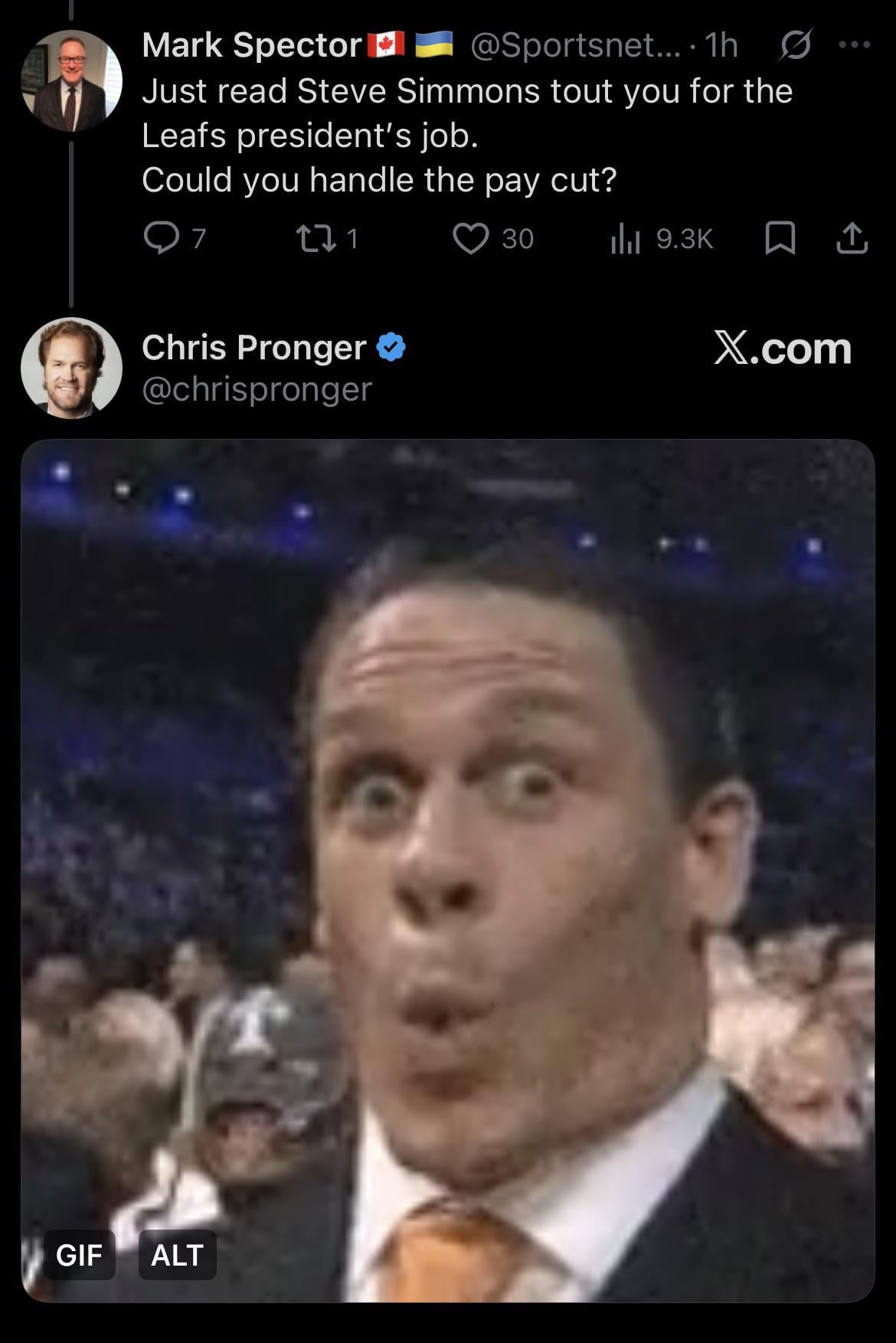 As much as I love Chris Pronger. We need someone with experience in managing a hockey team. With previous experience being a GM. No one mention this but what experience did Shanahan had before becoming the president of the Leafs?