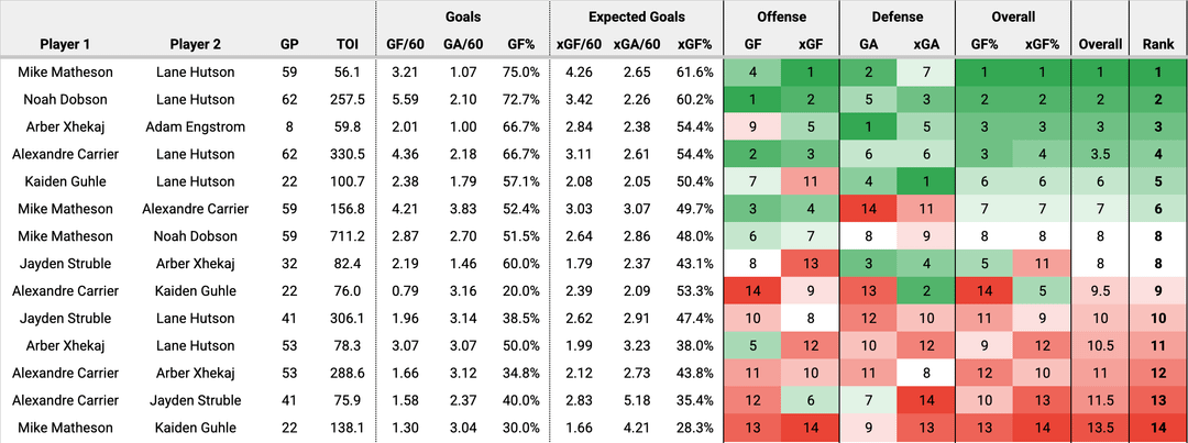 That’s a clean spreadsheet love it, nice work. Smart to take overall between GF% and xGF% because I find the truth is usually in the middle. My takeaways from this, maybe MTL should try this top 4 D: