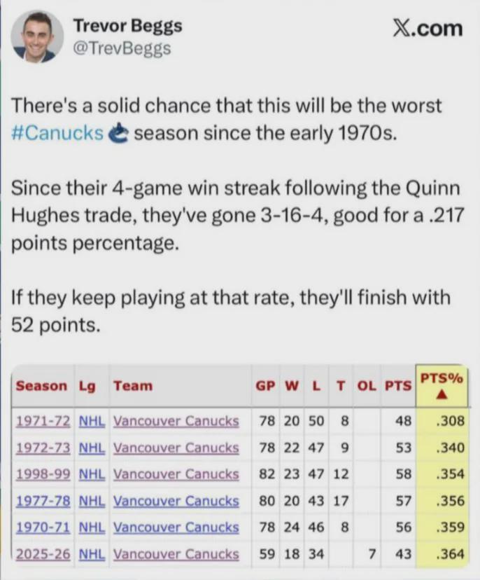 Saying 3-16-4 is a very optimistic way of saying ‘3 for 20’. We’re Canaucks fans! We dont need to sugar coat losing, are used to it.