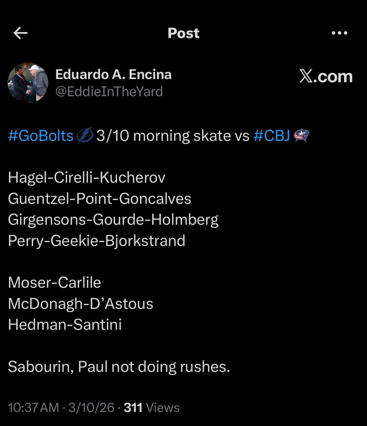 Also excited to see Gonzo back in the lineup, and I think Bjorkstrand on the 4th line with Geekie and Perry could be a good fit. Good for Carlile and Santini. I have been liking both of their games