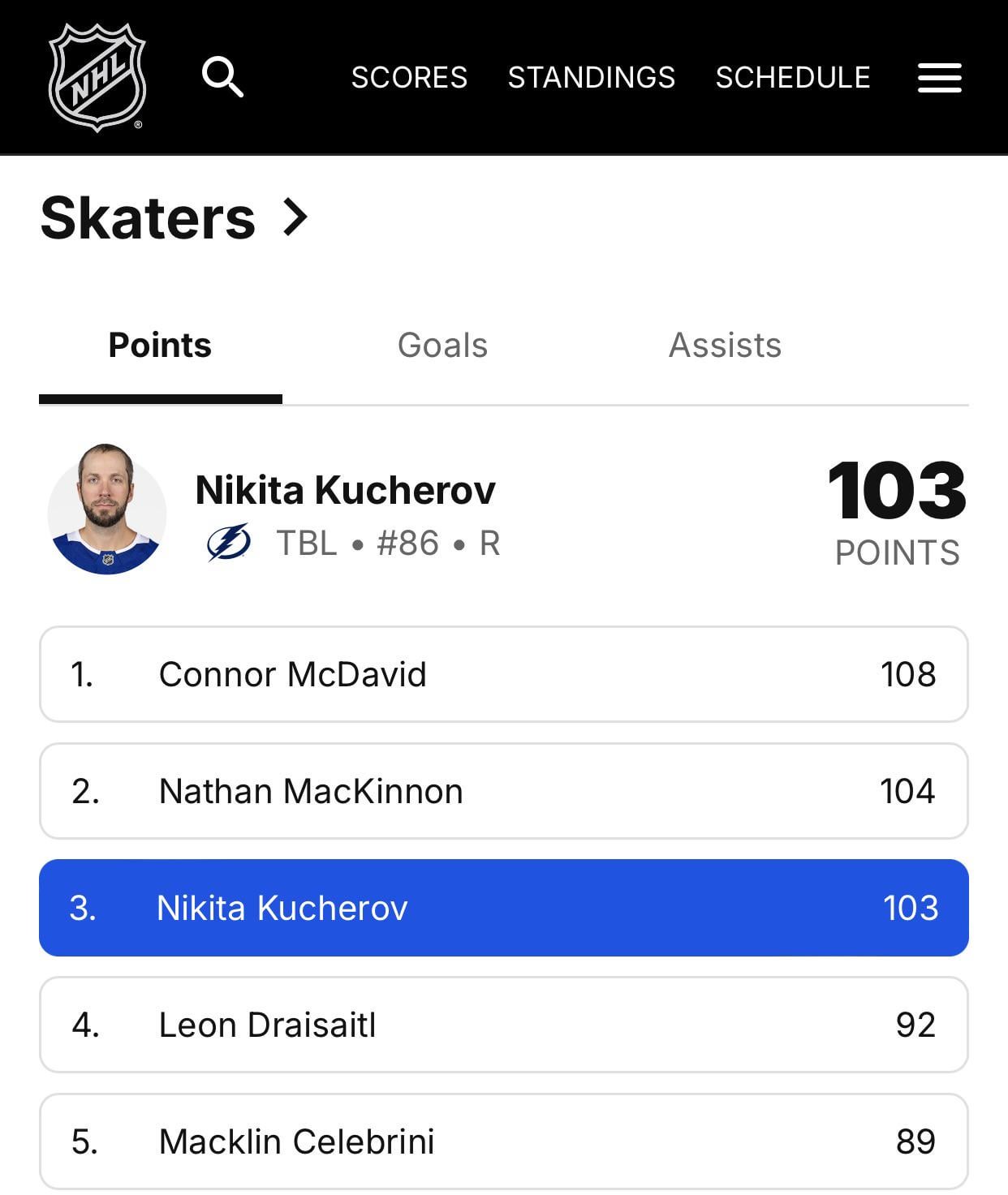* We’re fortunate to have such a dedicated player, Kucherov, who loves Lightning through & through. Kuch is generational and finally getting recognition he’s deserved long ago.