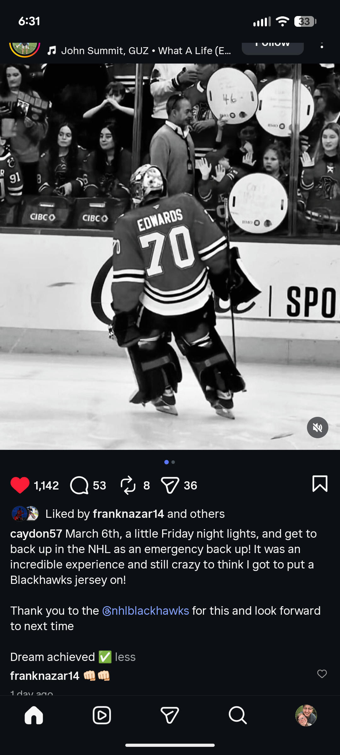 C’est vraiment cool de voir que même quelqu’un qui n’est pas avec l’équipe jour et nuit bénéficie d’une certaine reconnaissance de la part d’un ancien gardien de but et d’un joueur actuel.