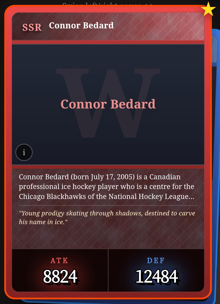 Meilleur tirage Wikigacha : Connor Bédard — manofredearth Association de l’OuestBlackhawks de ChicagoCentral DivisionCentrale DivisionChicago BlackhawksWestern Conference 3 Comments Substantial-Recipe72 2 mois ago Those stats should be the other way around lol Mgroppi83 2 mois ago What am I looking at? LetDiceRol 2 mois ago Neat game. What are some of your other cool cards? Write A CommentVous devez vous connecter pour publier un commentaire.