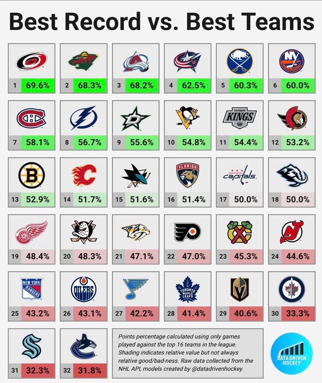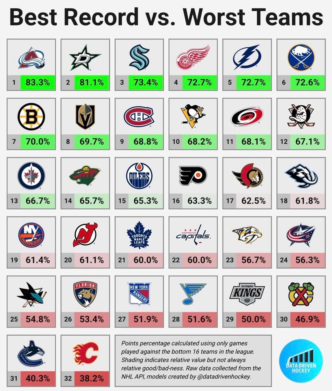 Only the Sabres and the Avalanche are in the top six on both charts. Incoming SCF?