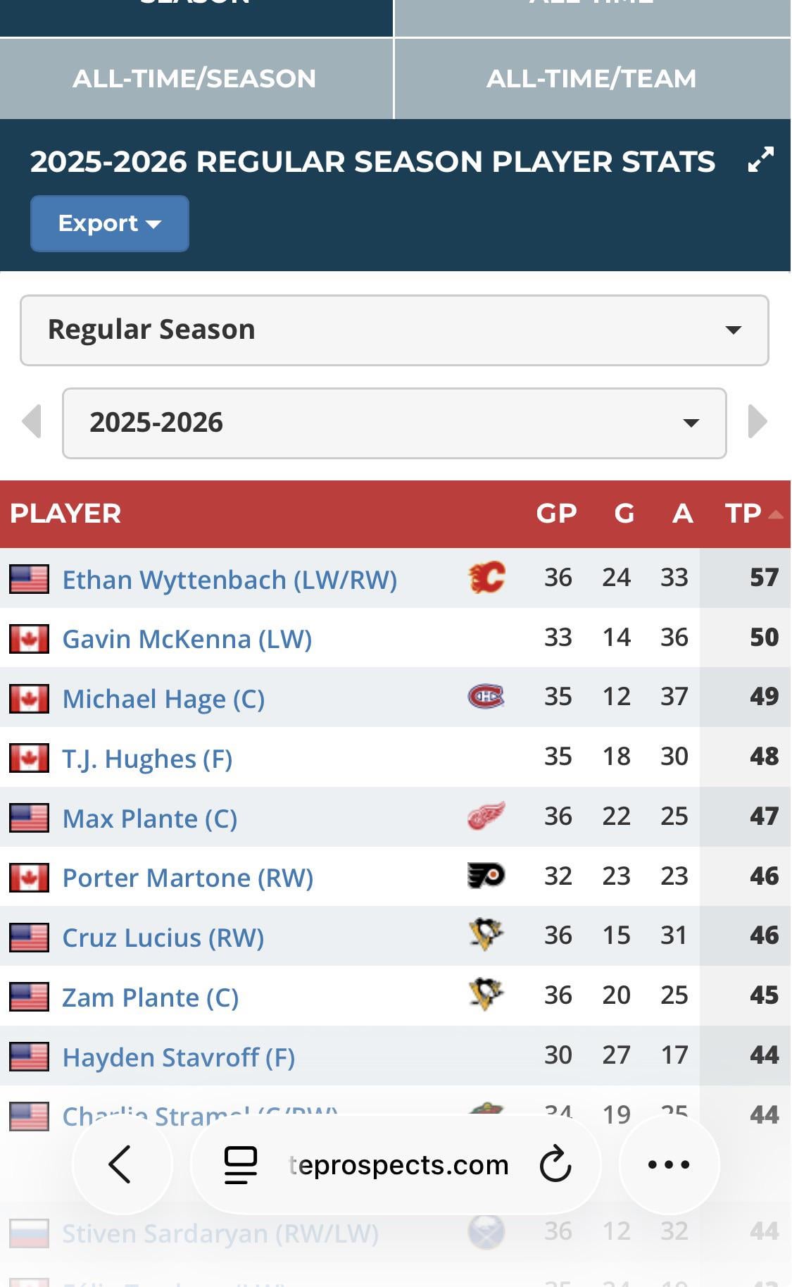 Damn, 2 flames prospects leading the NCAA? That’s awesome!!!