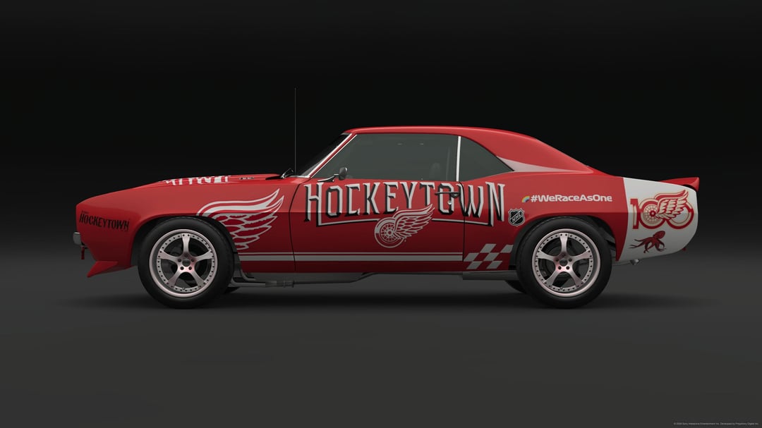 Bonjour les fans des Red Wings ! J’aime créer des emballages sur le thème de la LNH pour Grand Turismo 7. Pour l’équipe Original Six, j’utilise des muscle cars classiques, dans ce cas une Camero Z28 de 1969 avec un V8 de 6,2 L remplacé développant 642 chevaux pour certains de ces anciens et nouveaux muscles de Detroit. J’espère que vous apprécierez tous !