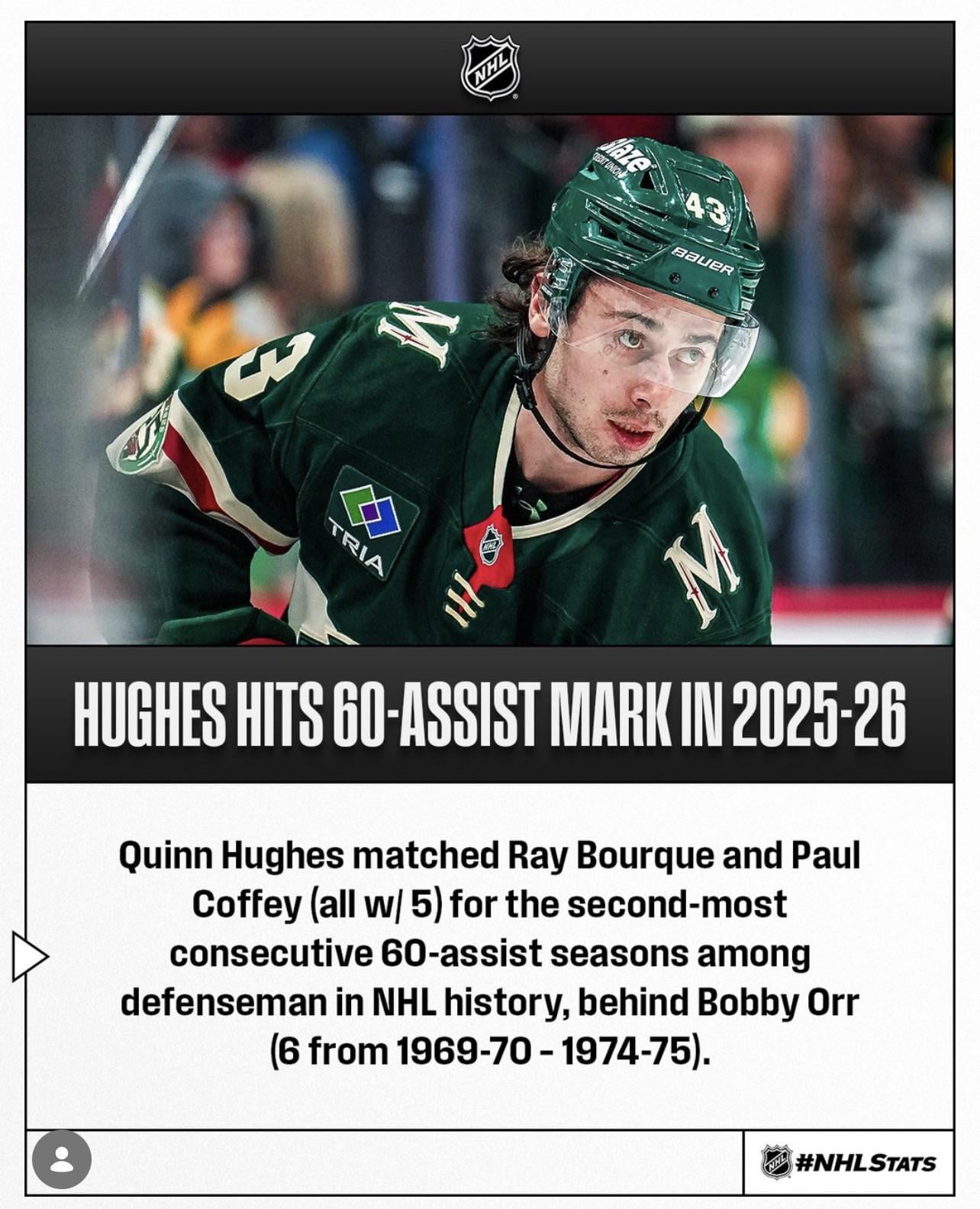 And apparently is only the third defenseman in history to hit 60 assists in 60 games, joining Orr and Coffey.