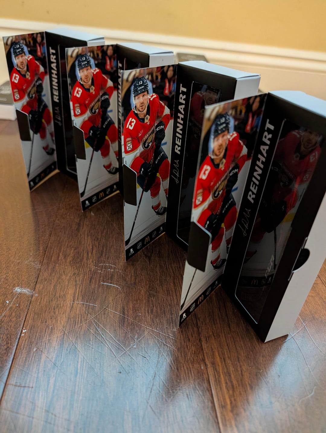 My dad and myself have bought like 25 of these and have pulled a single Reinhart, probably 12 mcdavids and 6 celebrinis. Each time ive bought like 5 at a time I have gotten 4 of one player and one single different one.