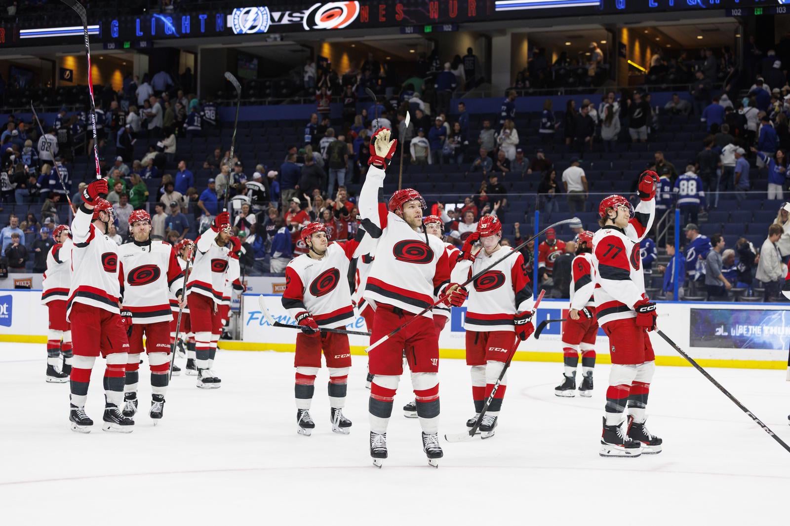 « Tout le monde a vraiment contribué » : Rod Brind’Amour, Frederik Andersen et Jordan Martinook lors de la victoire sur Bounce Back Road à Tampa Bay