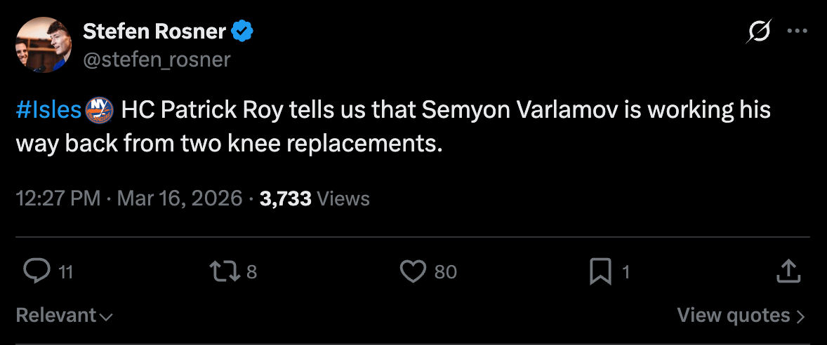 Ooof, that’s not something that gets done quick. Hope Varly can play again one day but if not that he gets to be involved somehow.