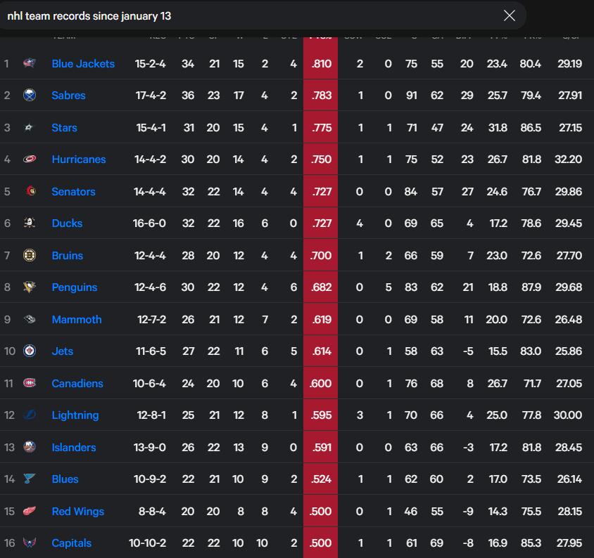 Yet all I ever hear about elsewhere is the Sabres. Columbus gets no love, let’s keep winning in spite of it!!