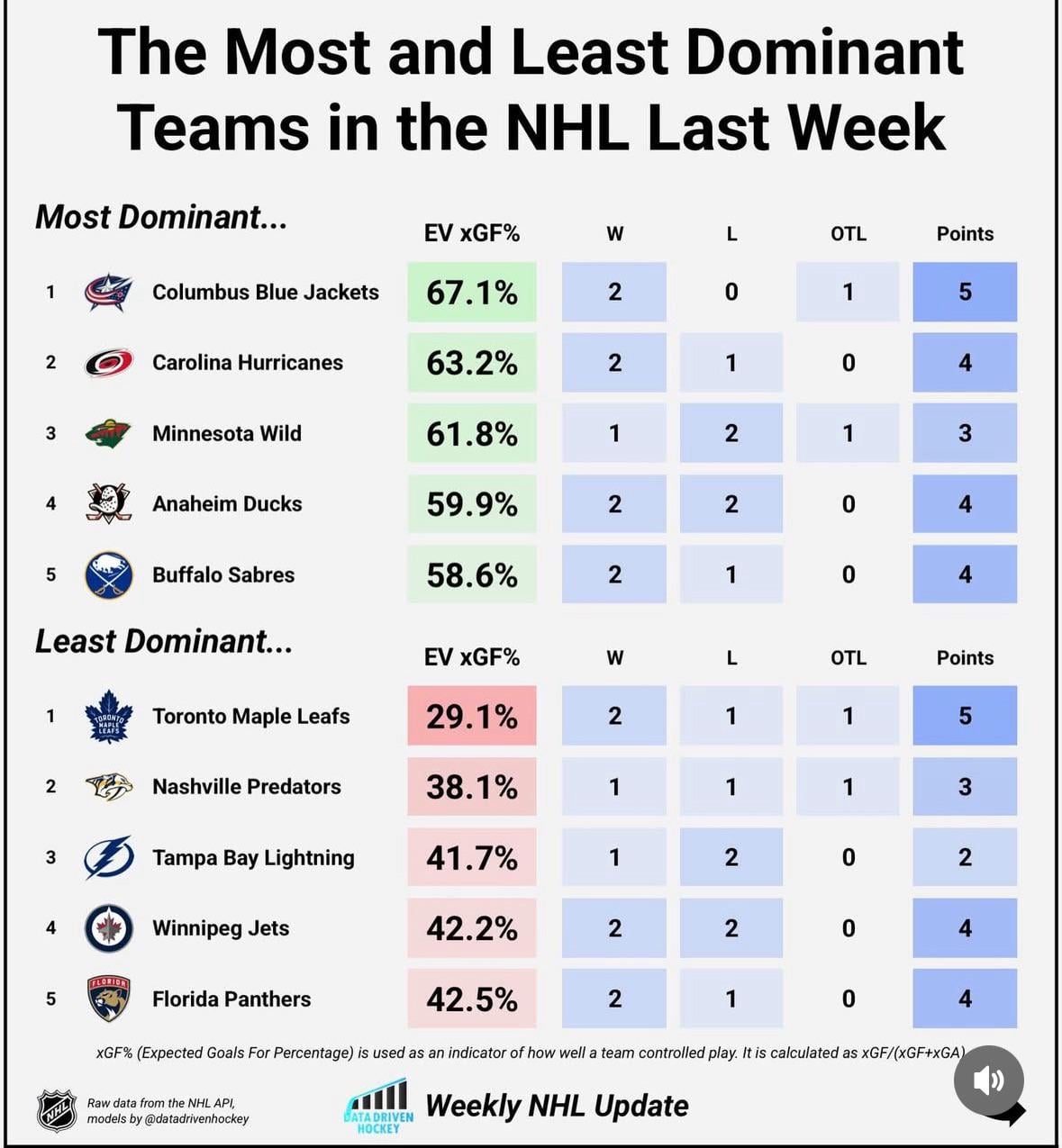 Watched all 3 games in full and don’t think I agree with the statistic at all. Flyers game was pretty close all around, but Rangers and Leafs both got up 3 goals and stopped playing offense, allowing us to rack up SOG. I’m not panicking based on these 3 games, although last night was particularly disappointing as the Leafs are a dead team walking. My concerns with this team are the same as always- we don’t shoot enough, or create enough traffic in front for tips and rebounds. When our passing game is on point, we score some beauties but seem to struggle getting the greasy ones at times. I still maintain there’s something physically off with Kaprisov….maybe sounds dumb since he has so many goals but the speed and elusiveness seem to be gone and other than the 1 timer from the wing, seems very reluctant to be aggressive. Maybe I’m crazy….
