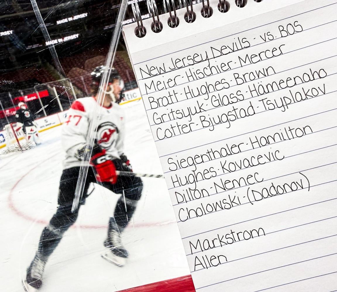 [Stein] Cela ne ressemble à aucun changement pour les #NJDevils ce soir contre les Bruins, à part Markstrom partant.