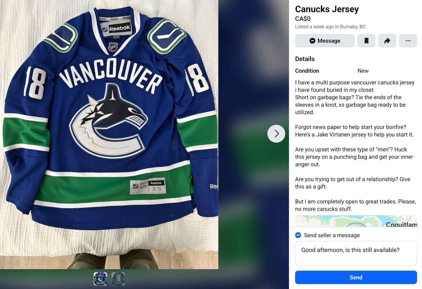 Wonder if they want a trade for my Kesler jersey?