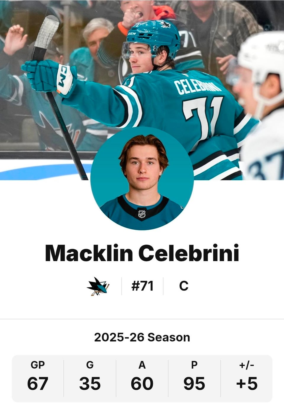 Celebrini is the only reason the Sharks are where they are. That’s MVP.
