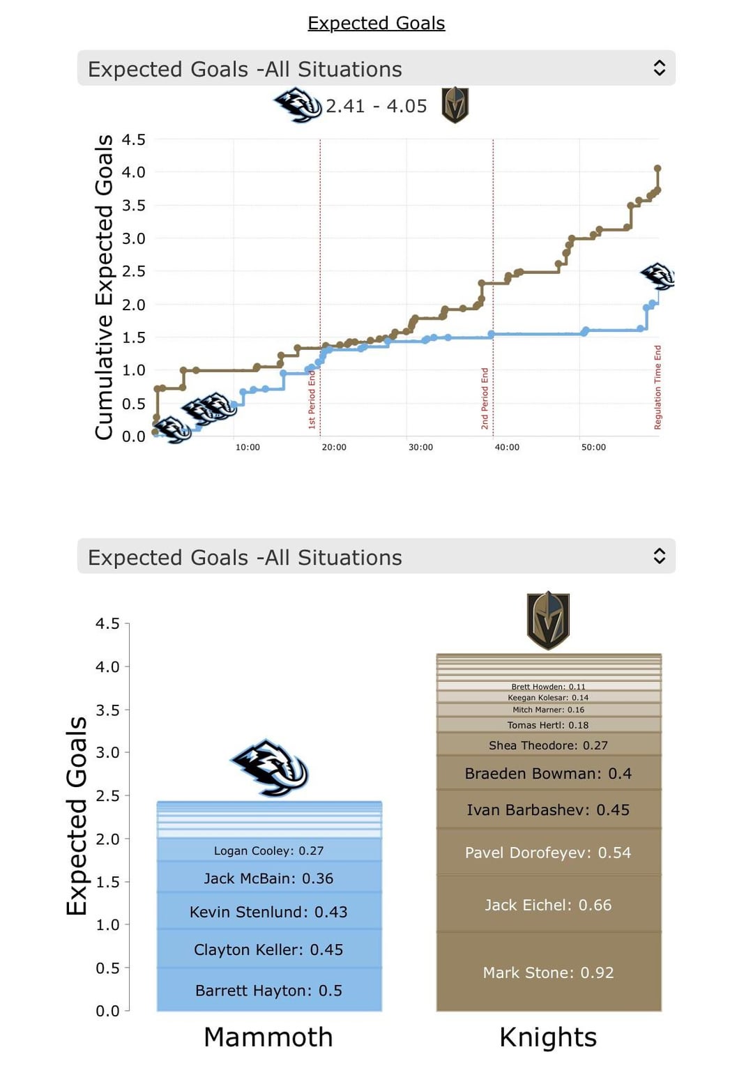 Barbashev, Dorofeyev, Eichel et Stone avaient plus de xGoals que tout l’Utah.