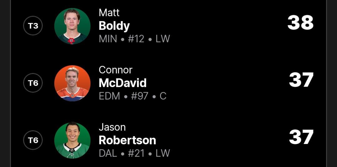 L’attaquant olympique médaillé d’or, Matt Boldy, devance l’attaquant olympique non médaillé d’or, Connor McDavid, et l’attaquant non olympique, Jason Robertson, dans les buts !