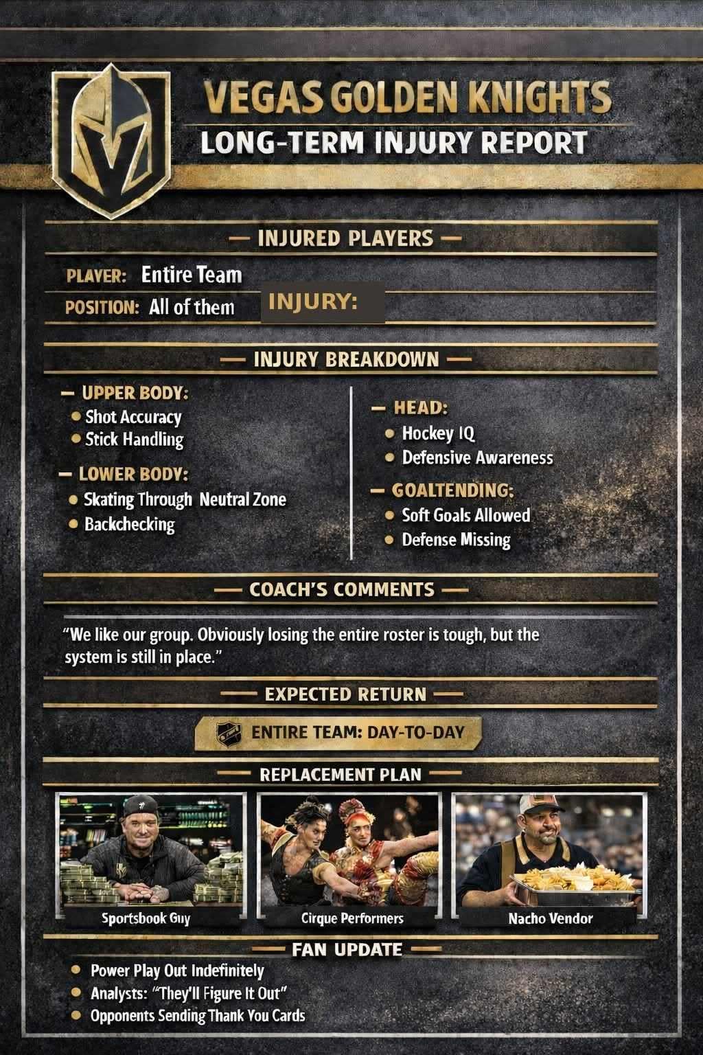 Maybe we can get that dude who yells BEER!!!! To be goalie
