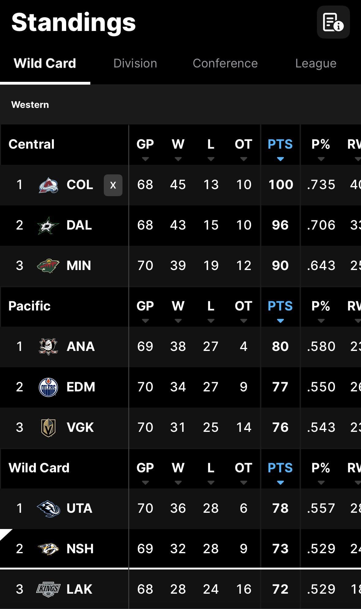 If they somehow move to WC1 and end up with a first round matchup against Anaheim, I think I like our chances.