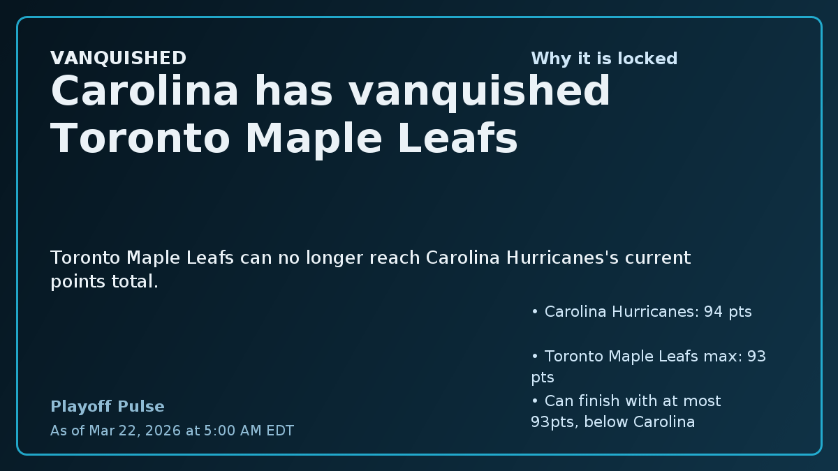 Les Canes ont maintenant vaincu 2 des 8 équipes de la conférence Est nécessaires pour décrocher une wildcard, et 1 des 5 équipes Metro nécessaires pour décrocher une place dans la division.